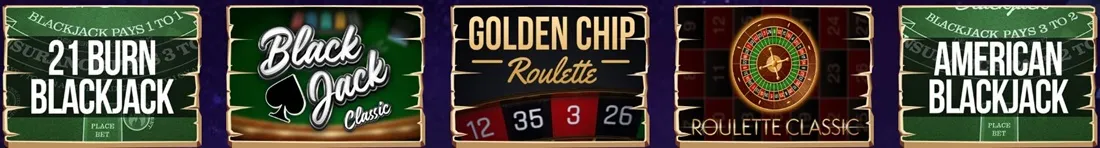 Στο μπλάκτζακ υπάρχει πολύ μεγάλος αριθμός τίτλων, κλασικών και μοντέρνων επιλογών, στην κατηγορία μπακαρά και ζάρια θα βρείτε επιλογές με μοντέρνα περιβάλλοντα, ενώ στο πόκερ, ακόμη και αν οι επιλογές είναι λιγότερες, μπορείτε να παίξετε κάποιες ξεχωριστές επιλογές, όπως το Casino Stud Poker.